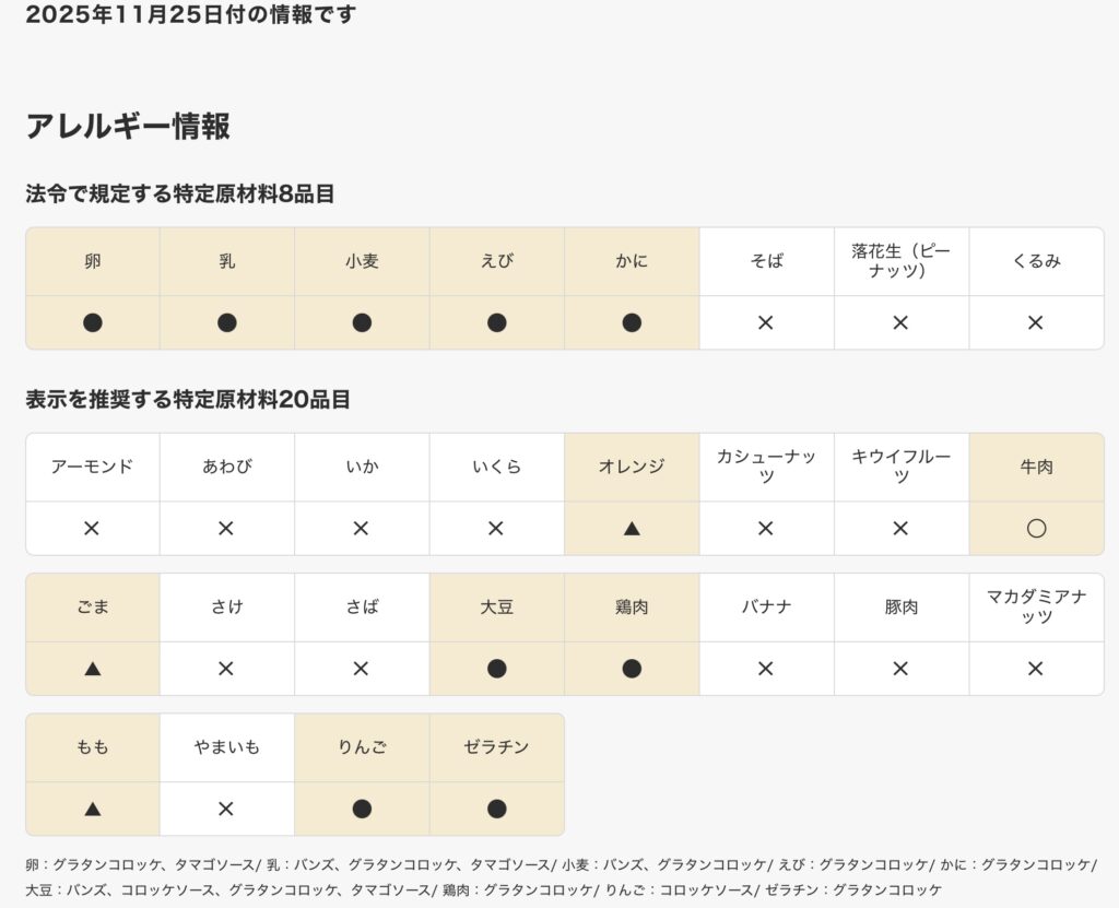 マクドナルド公式HPのグラコロのアレルギー情報には、えび、かにが「原材料(揚げ油を除く)として使用しています」と記載されています。