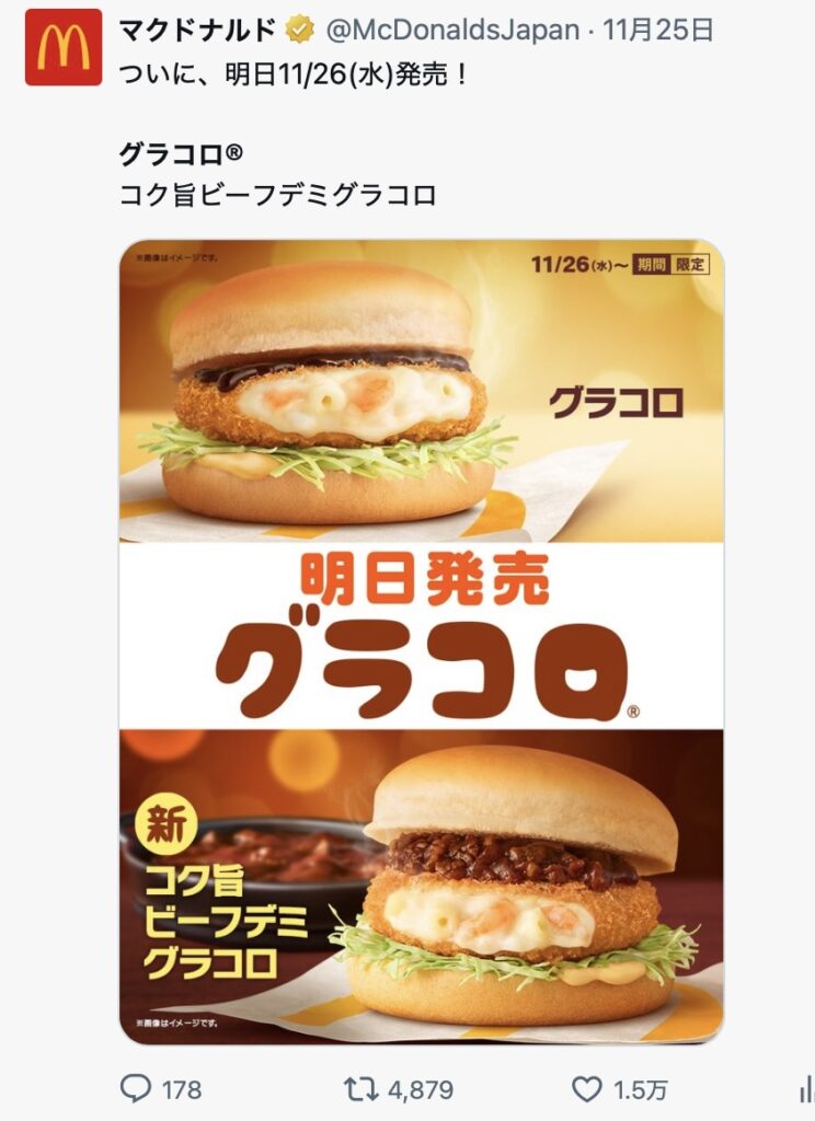 今年もマクドナルドの人気メニュー「グラコロ」に季節がやってきました。