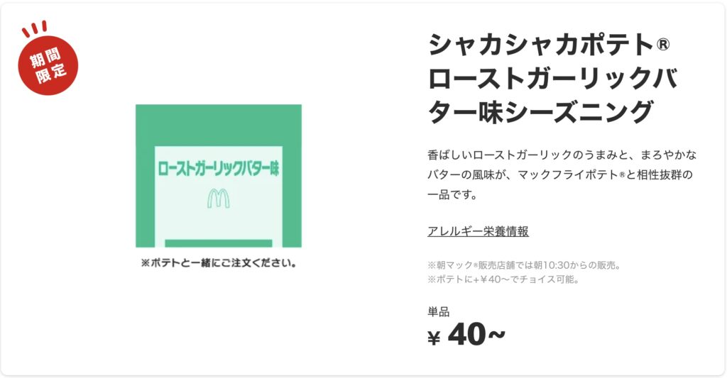 香ばしいローストガーリックのうまみと、まろやかなバターの風味が、マックフライポテトと相性抜群の一品になっているそうです。