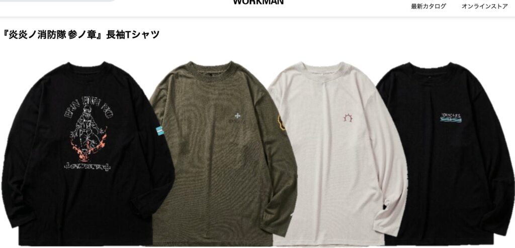 新商品として、人気アニメ「炎炎ノ消防隊 参ノ章」コラボのワークマン限定長袖Tシャツが1280円で、M~3L、4色展開される。こちらは数量限定品だ。