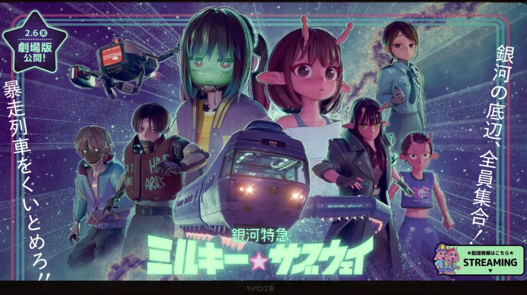 今回の劇場版は、2025年7月より配信され、YouTube総再生回数1.5億回を突破したショートアニメ『銀河特急 ミルキー☆サブウェイ』の再編集版。新シーンを追加し、劇場向けに再構成されているとのこと。