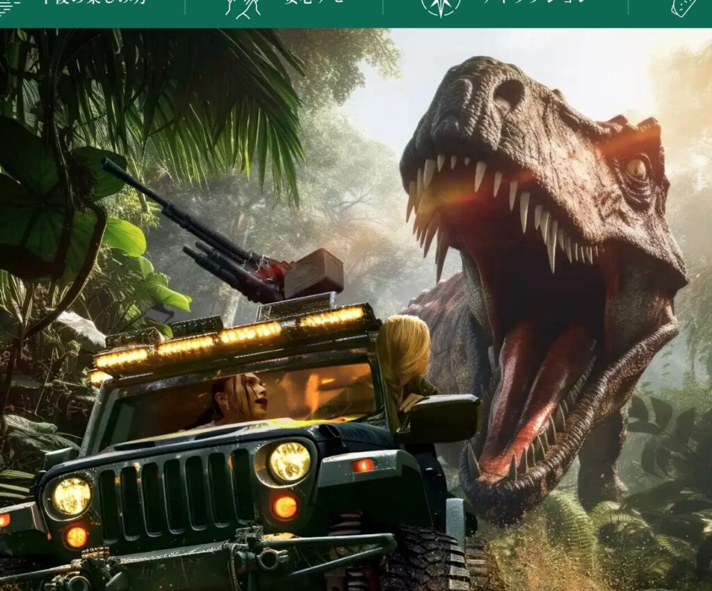ジャングリア沖縄で目玉のライド型アトラクション「DINOSAUR SAFARI(ダイナソーサファリ)」では、参加者は12人乗りの大型オフロード車に乗り込み、広大なジャングルを約17分間かけて駆け抜ける。車体の激しい揺れやリアルな演出により、まるで恐竜時代に迷い込んだような臨場感を味わえるのが特徴。