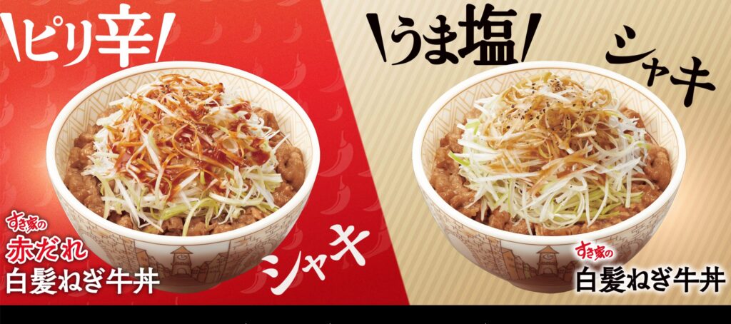 12月2日より、すき家が新メニュー「白髪ねぎ牛丼」「赤だれ白髪ねぎ牛丼」を販売開始されている。