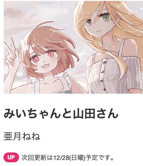 『みいちゃんと山田さん』は、亜月ねね氏による作品。もともとはX(旧Twitter)上で掲載されていたものが話題となり、それがきっかけで「マガポケ」での連載につながったそう。「マガポケ」では、2024年9月8日より連載。