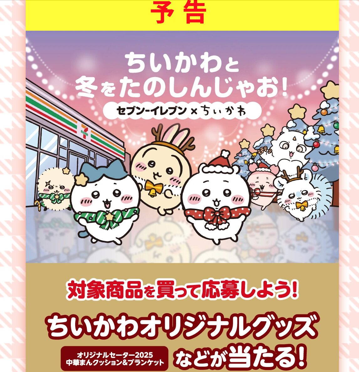 今回は、『ちいかわと冬をたのしんじゃお!』というタイトルでの実施になる。2024年のセブン×ちいかわコラボが好評だったことを受け、去年から商品数を7品増やしての開催だという。