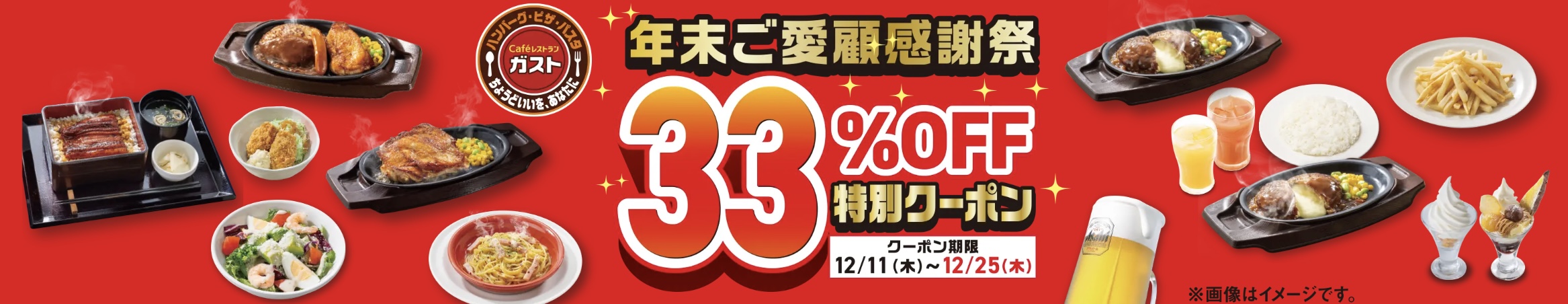 ガストとバーミヤン「33%も安くなる」12月25日まで