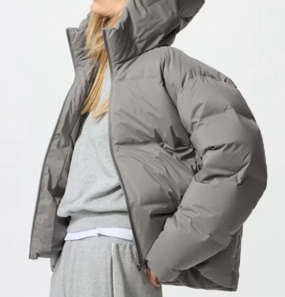 縫い目がないので暖かさがキープでき、首まわりはクッション使用のダウン。シルエットも可愛く、優秀すぎる1着。