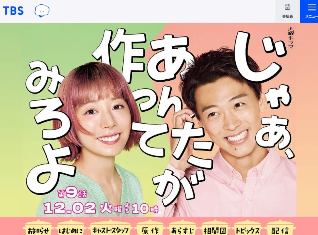 画像は「火曜ドラマ『じゃあ、あんたが作ってみろよ』|TBSテレビ」より