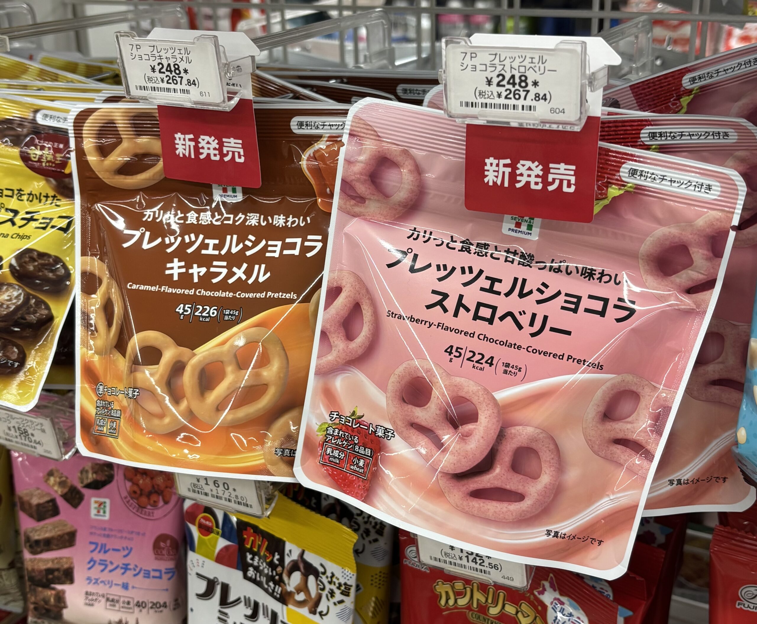 それが今回ご紹介する、「セブンプレミアム 」シリーズの新商品「プレッツェルショコラキャラメル」と「プレッツェルショコラストロベリー」です。