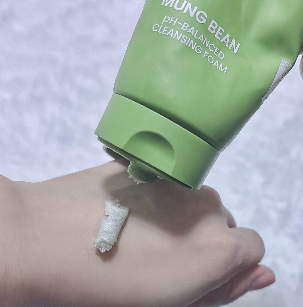 ディープクレンジングの秘訣である緑豆の粉がつぶつぶと入っていて、テクスチャは若干固め。
